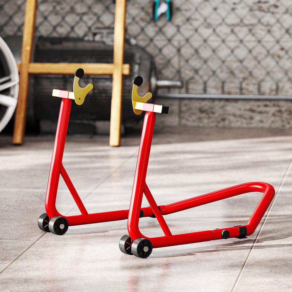 Moottoripyörän varikkotuki / moottoripyörätuki / paddock-teline / MC-tuki etu- ja takapyörälle