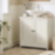 Kylpyhuonehylly, jossa on kaappi säädettävillä hyllyillä - Valkoinen