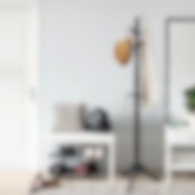 Puinen vaatenaulakko lattiamalli – 9 koukkua, säädettävä korkeus, massiivipuuta (musta)