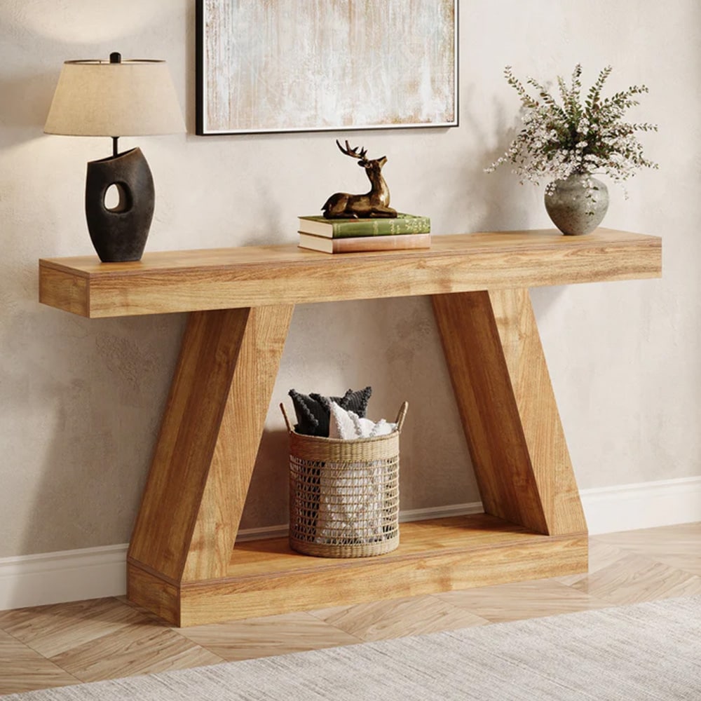 Puinen reliefipöytä kaksivärisellä muotoilulla ja alahyllyllä 160x30x82cm