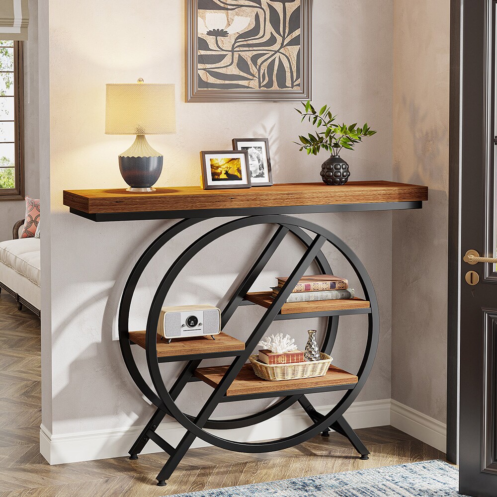 Pyöreä sivupöytä 2 hyllyllä – maalaismainen ruskea/musta