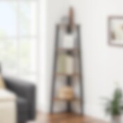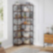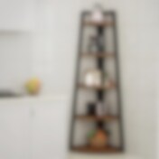 Teollisuustyylinen kulmahylly, jossa 5 hyllyä - Tummanruskea / jalustallinen hylly / kulmahylly, jossa on avoimet hyllyt