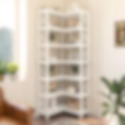 Kulmakirjahylly, jossa on 14 hyllyä ja L-muotoinen muotoilu - Valkoinen / Kulmakirjahylly, jossa on monta hyllyä / L-muotoinen kulmakirjahylly