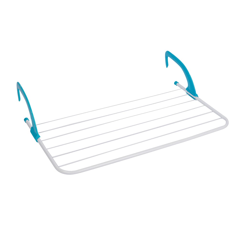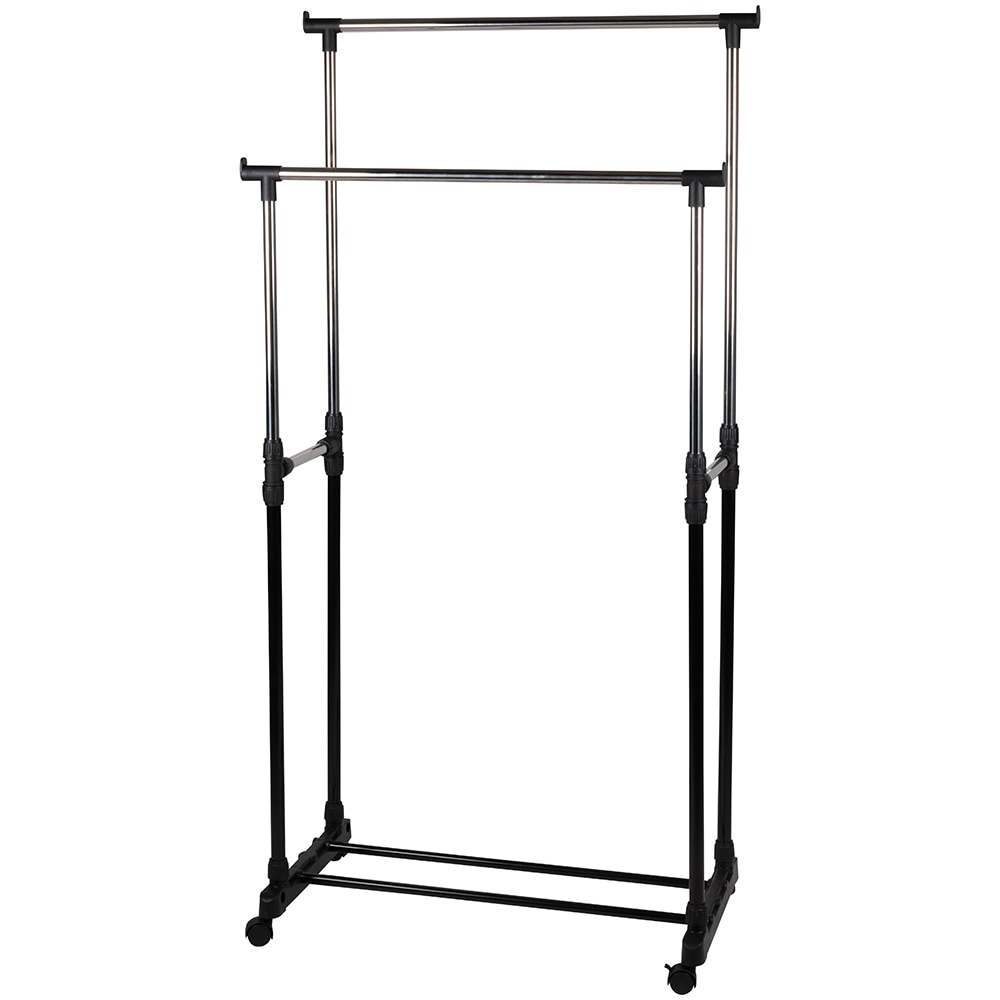 Liikuteltava ruostumattomasta teräksestä valmistettu vaateteline, jossa on säädettävä korkeus
