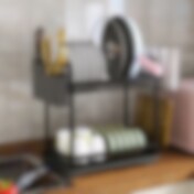 Teräksinen tiskiteline, jossa on irrotettava lokero ja kaksi tasoa - Musta