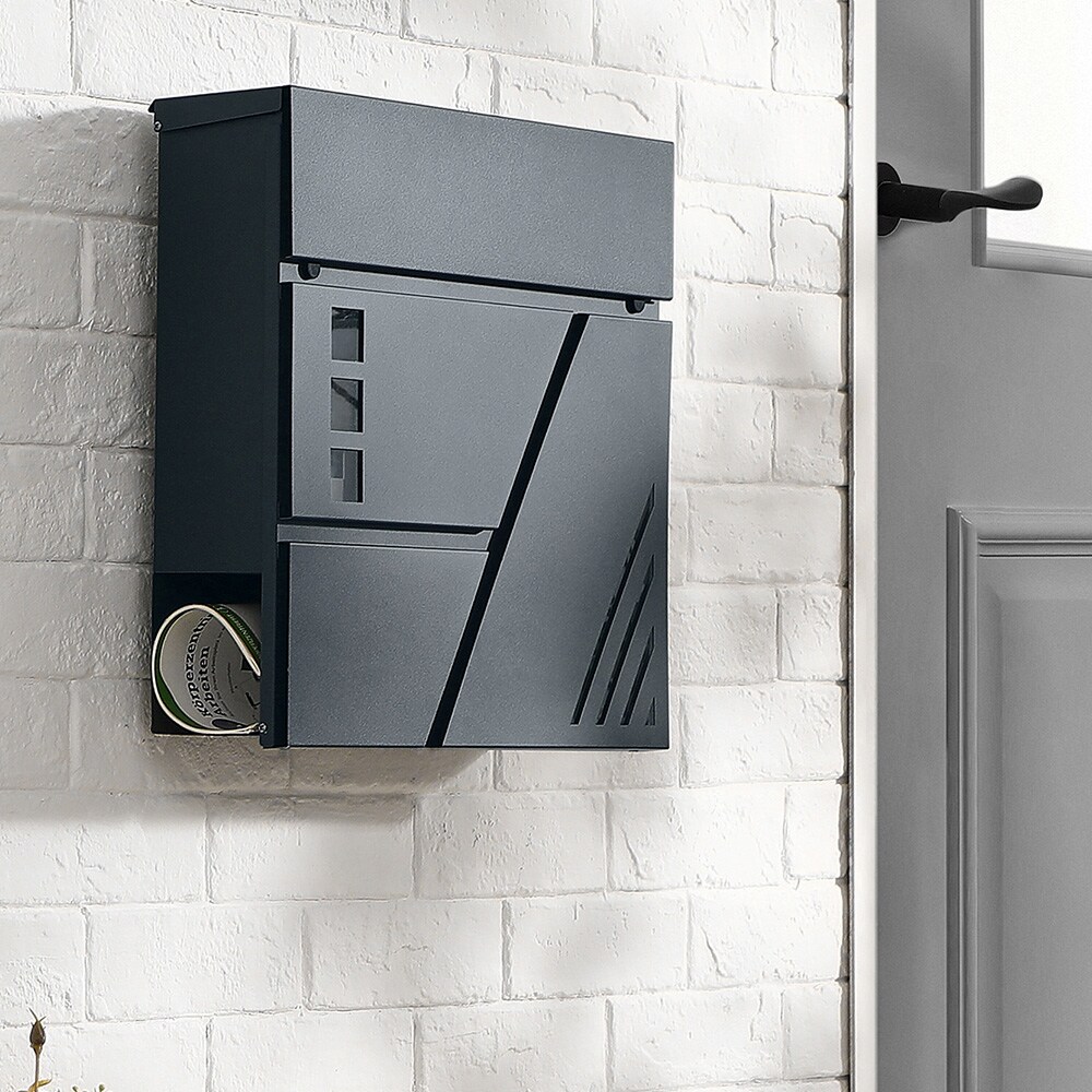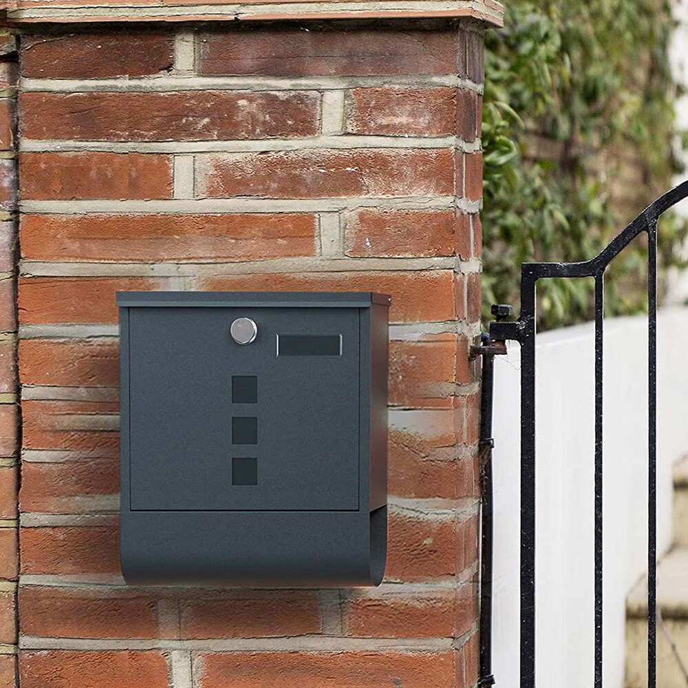Seinään asennettava kirjelaatikko lukolla ja nimikilvellä - Harmaa