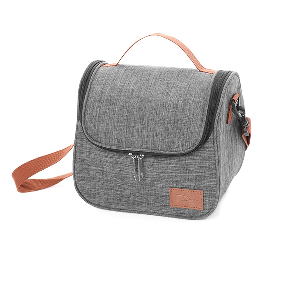 Harmaa melange kylmälaukku, jossa on alumiinifoliovuori