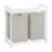 Pyykkikori, jossa on 2 lokeroa ja hylly - Valkoinen/harmaa