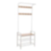 Vaatenaulakko 9 koukulla, kenkätelineellä ja istuinpenkillä – valkoinen/tammi