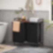 Pyykkikori, jossa on 2 ulosvedettävää ja irrotettavaa pyykkipussia 2x46L - Musta