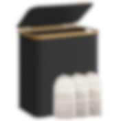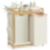 Bambu pyykkikori 2-osainen – 100 L, irrotettavat pussit, hylly ja sivutaskut