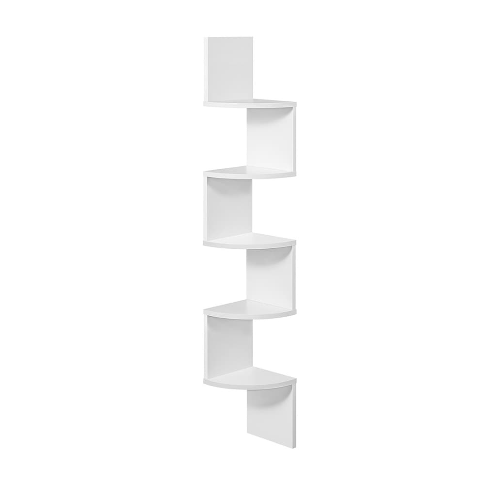 Seinäkiinnitteinen kulmakirjahylly 5 hyllyllä - Valkoinen