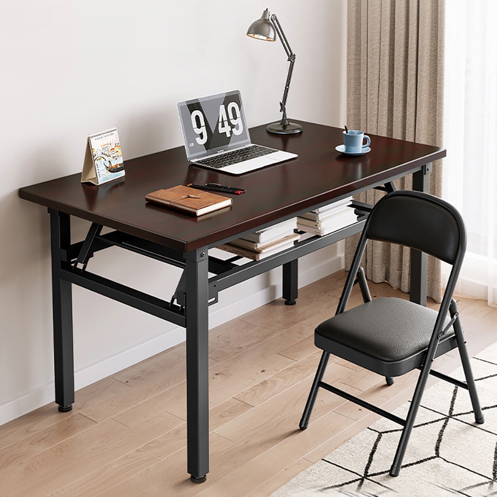 Puinen tietokonepöytä, jossa on integroitu kirjahylly ja joustava säilytystila