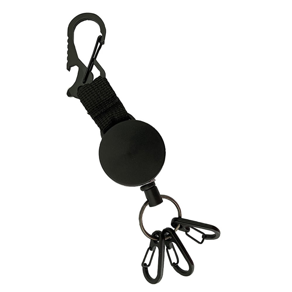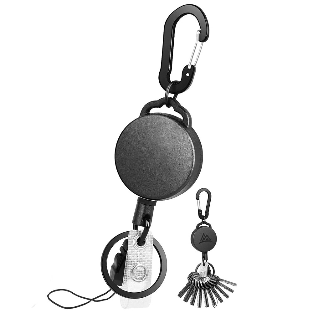 Sisäänvedettävä avaimenperä, jossa on karabiini ja vaijeri