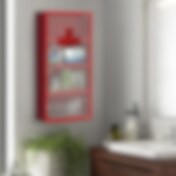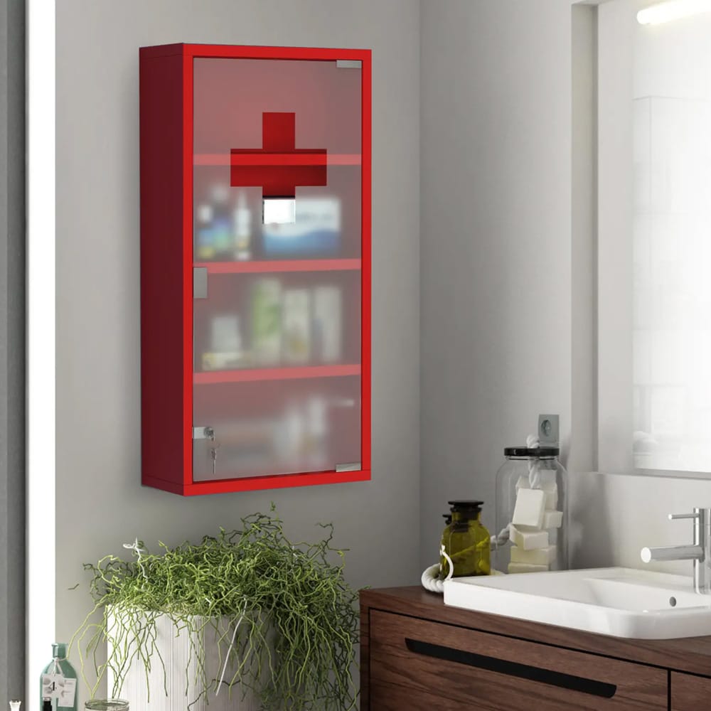 Teräksinen lääkekaappi himmeällä lasiovella / lukittava apteekkikaappi / seinäkaappi 4 hyllyllä - Punainen - Punainen