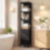 Kapea kylpyhuonekaappi / korkea kylpyhuonekaappi / kaappi laatikoilla ja avohyllyillä – musta
