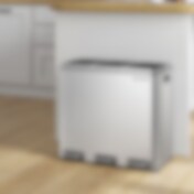 Poljinkäyttöinen roskakori, jossa on 3 lokeroa jätteiden lajitteluun – Hopea/Musta