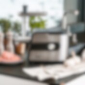 Lihamylly vihannesleikkurilla / kotitalousmylly makkarasuuttimella ja kebbe-lisäosalla / ruokamylly