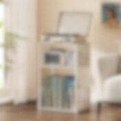 Stereopenkki vinyylitarjottimella 43 x 30 x 69 cm, valkoinen muotoilu