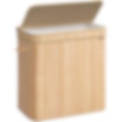 Bambusta valmistettu pyykkikori, jossa on 2 lokeroa ja kansi 100L - Valkoinen