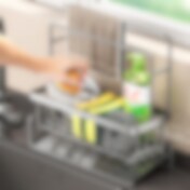 Ulosvedettävä tiskihylly tiskialtaaseen, jonka pituus on säädettävissä
