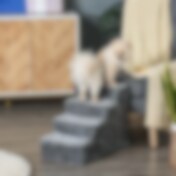 Koiran portaat 4 askelmalla vaaleanharmaa / lemmikkiportaat sängylle ja sohvalle / pienille ja iäkkäille koirille