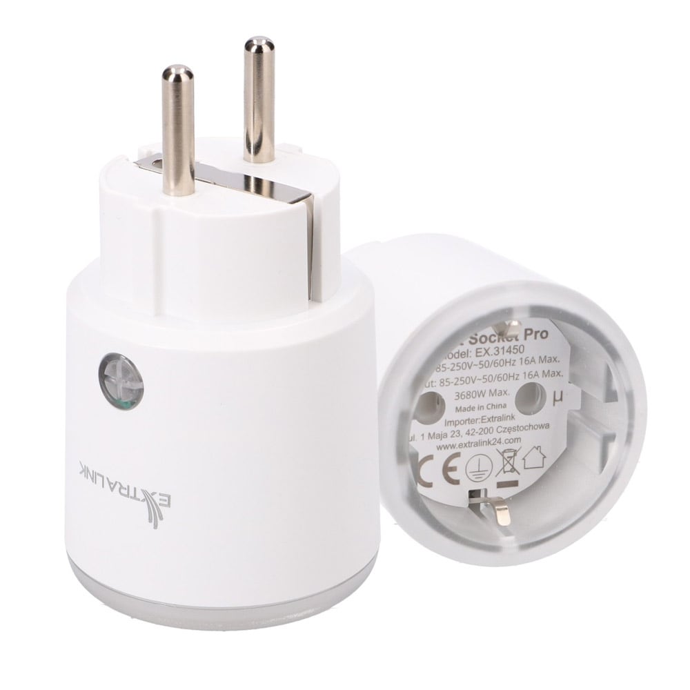 Extralink Smart Life seinäpistorasia - 230V + USB-A (5V/2.1A) + USB-C (5V/3A) - kauko-ohjaus sovelluksen avulla