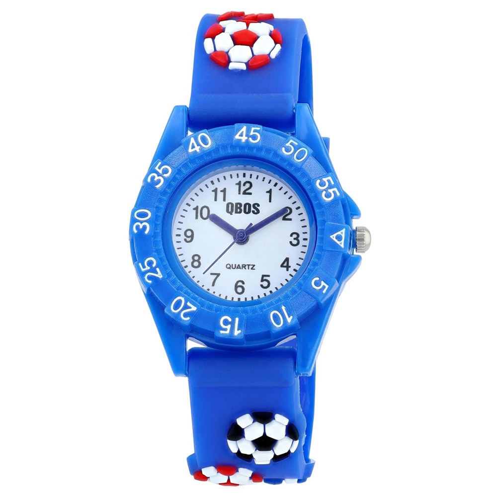 QBOS lasten rannekello silikonirannekkeella / sininen rannekello jalkapallokuvioinnilla