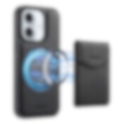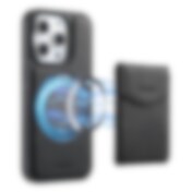Keinonahkakotelo, jossa on magneettinen kortinpidike iPhone 16:lle, jossa on irrotettava kiinnike - Musta