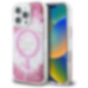 Guess HC Resin Bottom Glitter MagSafe iPhone 16 Pro Case - vaaleanpunainen