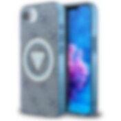 Guess IML Metal Glitter 4G Circle Triangle MagSafe Case for iPhone 16e - sininen
