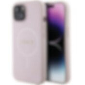 Guess Saffiano MagSafe -kotelo iPhone 15 Plus - vaaleanpunainen