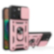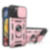 Hybrid Armor Camshield kotelo jalustalla ja kamerasuojalla iPhone 15 Plus - vaaleanpunainen