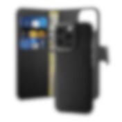 Puro Wallet Irrotettava MagSafe 2in1 PU nahkakotelo läpällä ja lompakko iPhone 16 Pro Max - musta