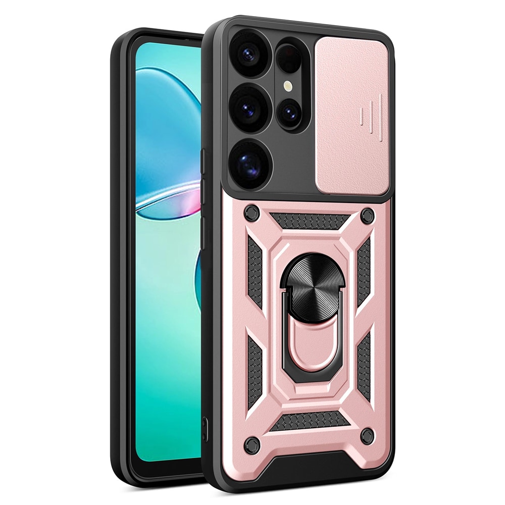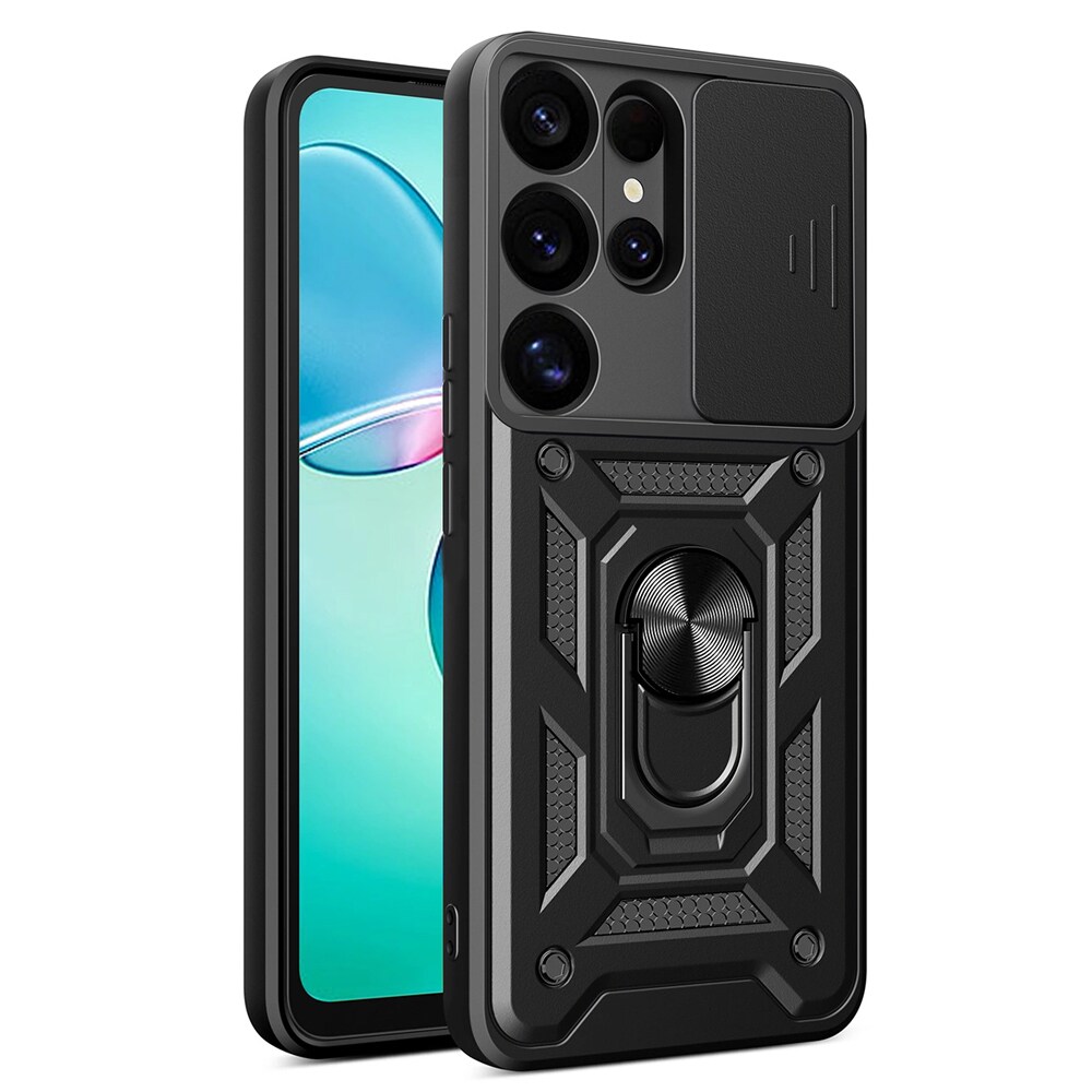 Takakuori, jossa on kameran suojaus ja matkapuhelimen rengas Samsung Galaxy S25 Ultra - Svart