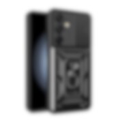 Hybrid Armor Camshield Shell -kuori, jossa on mobiilirengas ja kameran suojaus Samsung Galaxy A36 - Musta