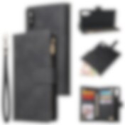 Suuri keinonahkalompakko, jossa on matkapuhelinlokero ja älykkäät ominaisuudet - Musta