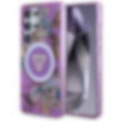 Guess Glitter Flowers kolmio painikkeet MagSafe tapauksessa Samsung Galaxy S25 Ultra - violetti