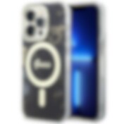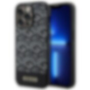 Guess GUHMP13LP4RPSK iPhone 13 Pro / 13 6.1" musta/musta kovakotelo 4G painetut raidat MagSafe