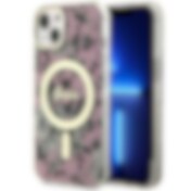 Guess Flower MagSafe -kotelo iPhone 14:lle - vaaleanpunainen