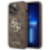 Guess 4G Iso metallilogo kotelo iPhone 14 Pro:lle - ruskea