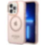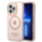 Guess GUHMP14XHTCMP iPhone 14 Pro Max 6.7" vaaleanpunainen kova MagSafe-läpikuultava kotelo
