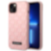 Guess GUHCP14MPSATLP iPhone 14 Plus 6.7" vaaleanpunainen Saffiano kova kotelo Triangle Logo