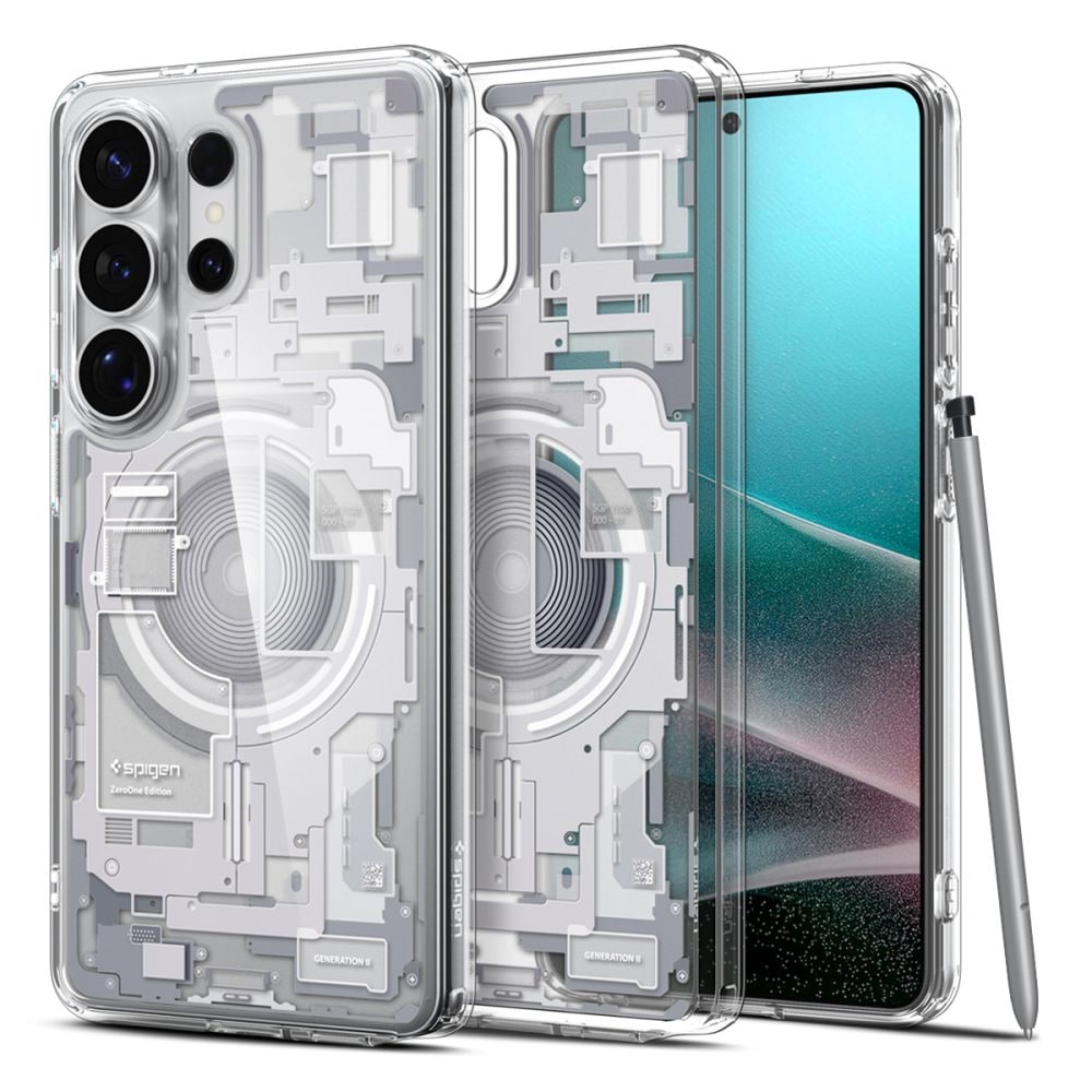 Spigen Ultra Hybrid Mag Mag MagSafe -kotelo Samsung Galaxy S26 Ultra Zero One - Kirkas ja valkoinen