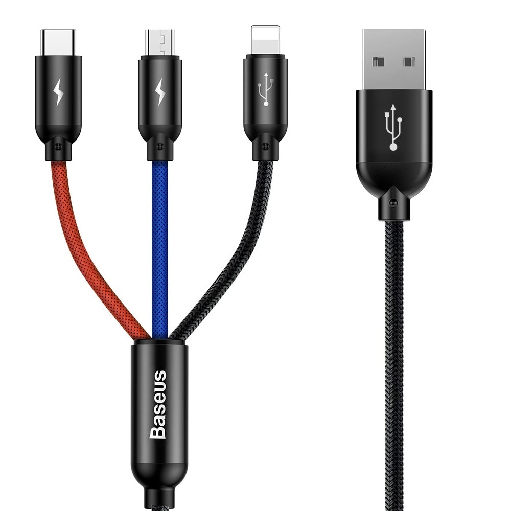 Dudao 3in1 USB-kaapeli 60W MicroUSB / USB-C / Lightning -yhteydellä