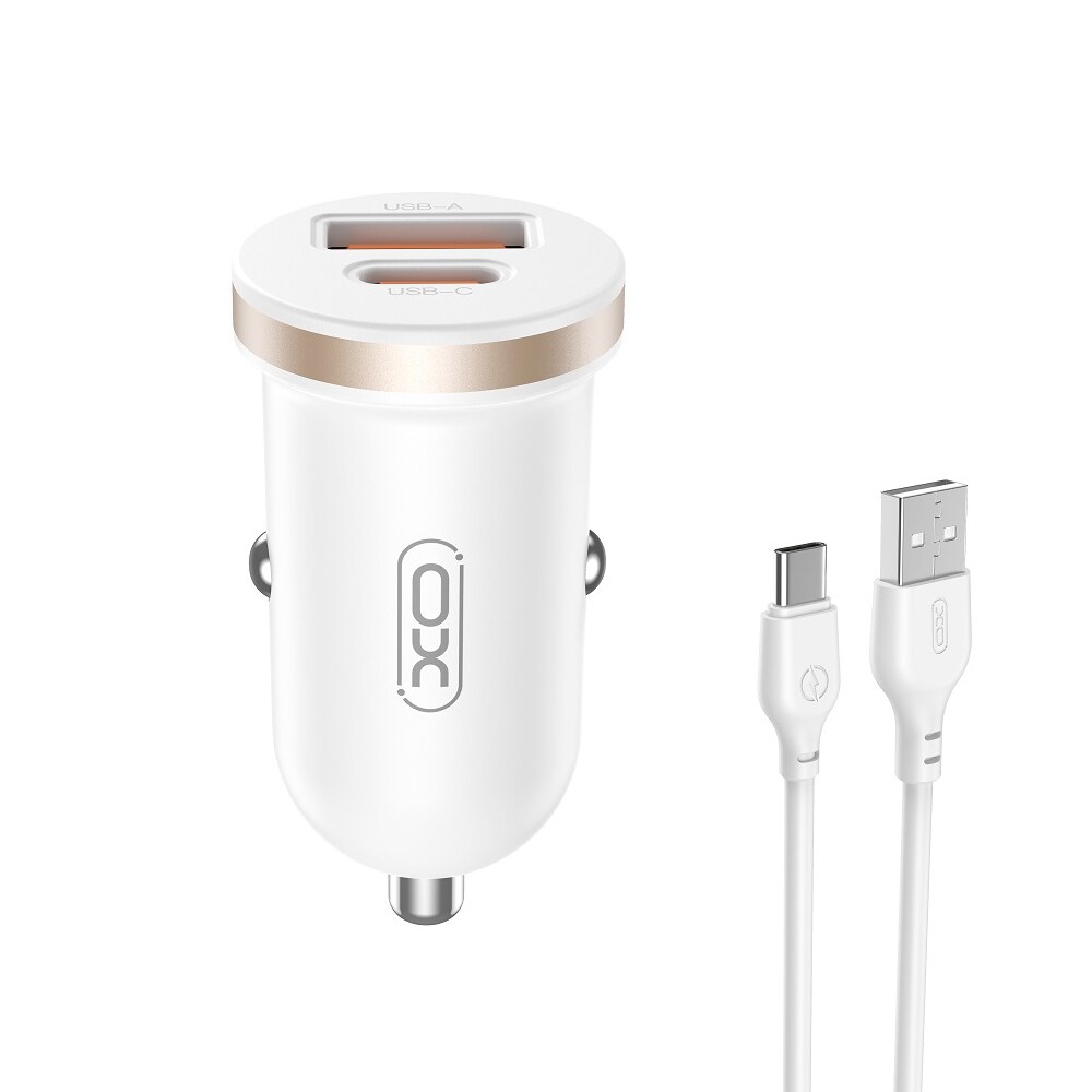 XO Autolaturi, jossa USB-C PD 30 W - sis. USB-C USB-C-kaapeli