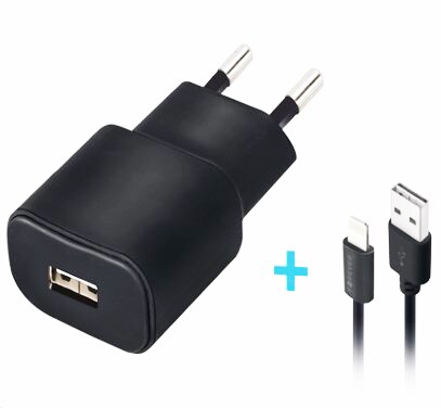 Maxlife iPhone Laturi MXTC-01, jossa on 1A USB-lähtö ja Lightning-kaapeli