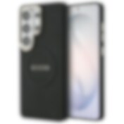 Guess Saffiano Peony kohokuvioitu rengas MagSafe kotelo Samsung Galaxy S26+ - musta