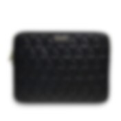DKNY Sleeve Checkered Pattern Printed Stripes 16" Laptop Case - Musta