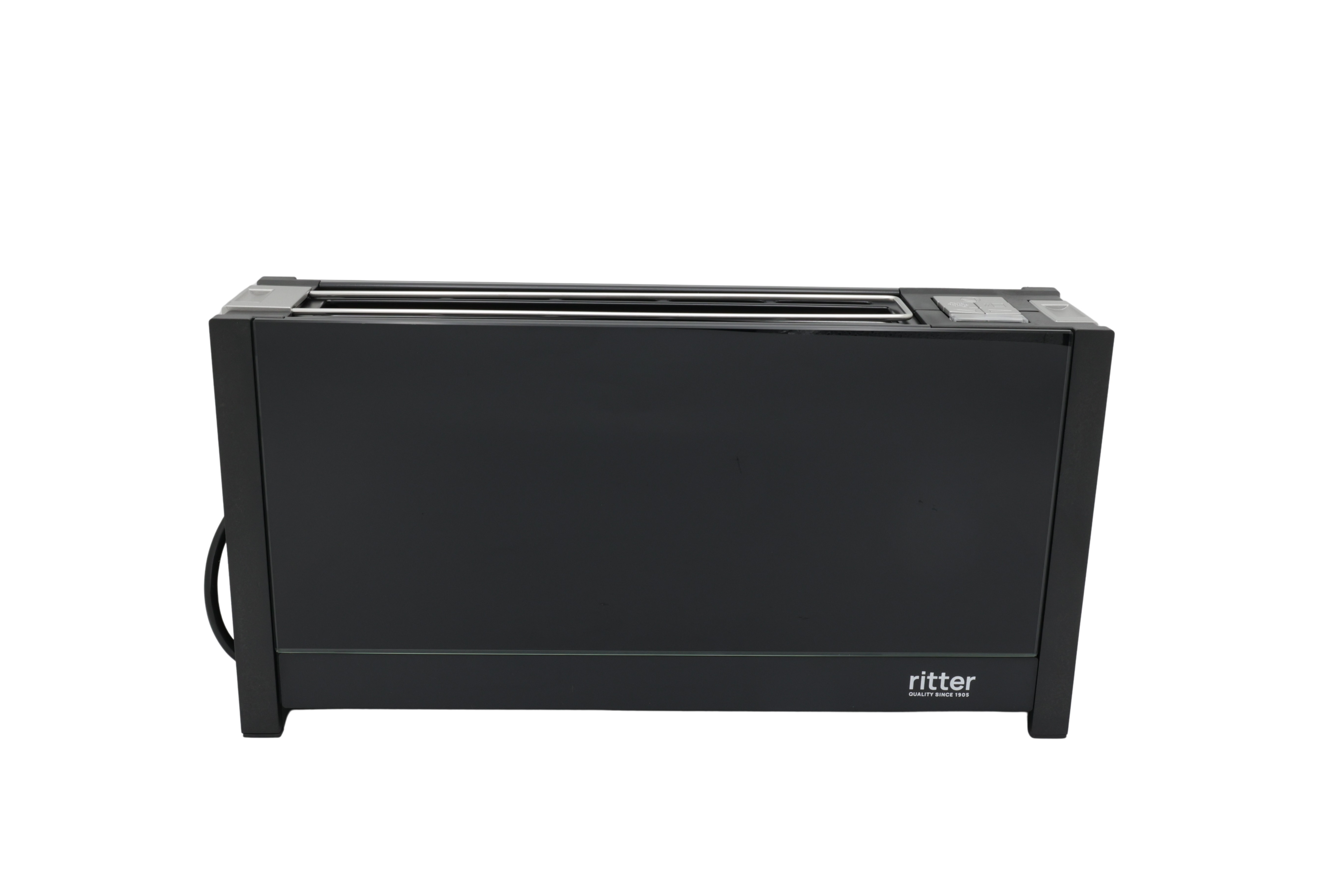 ritter leivänpaahdin 630000 volcano 5, pitkäaukkoinen leivänpaahdin, musta, jossa on tyylikkäät lasisuojat